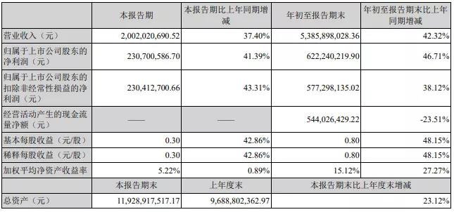 喜報!公司前三季度實現營業收入53.86億元,同比上升42%